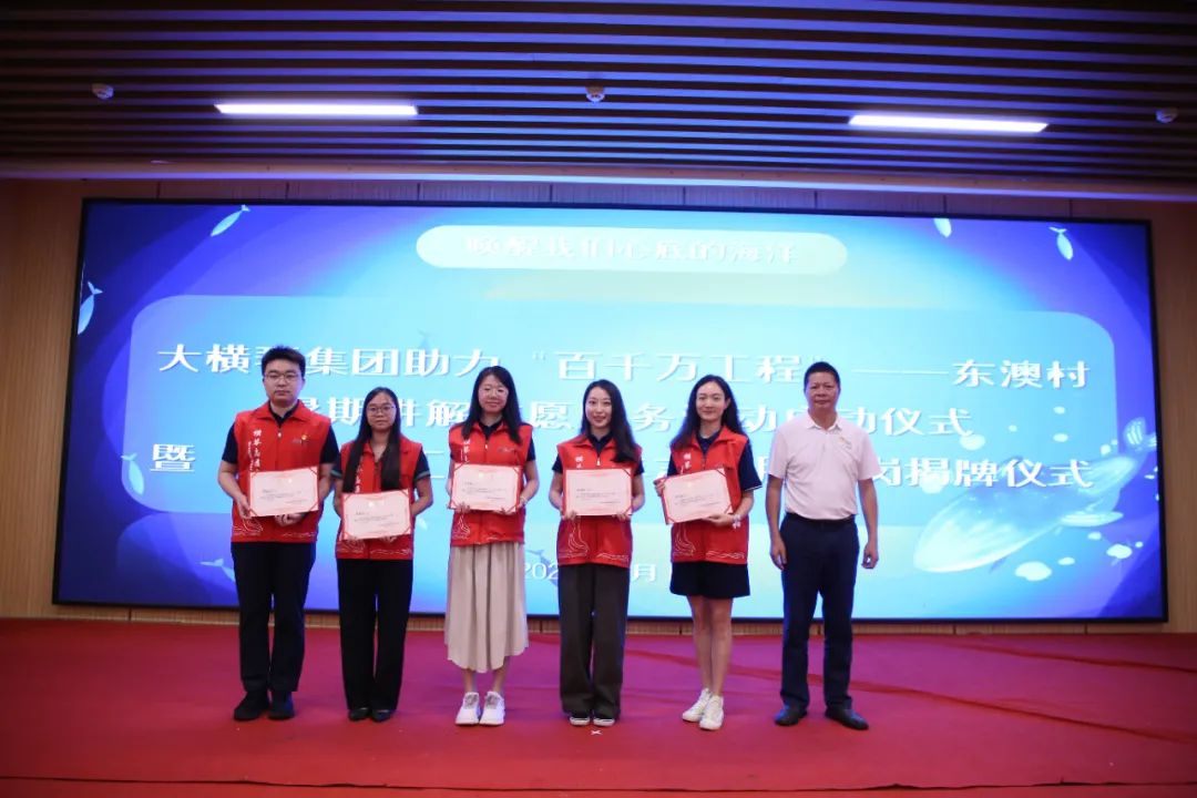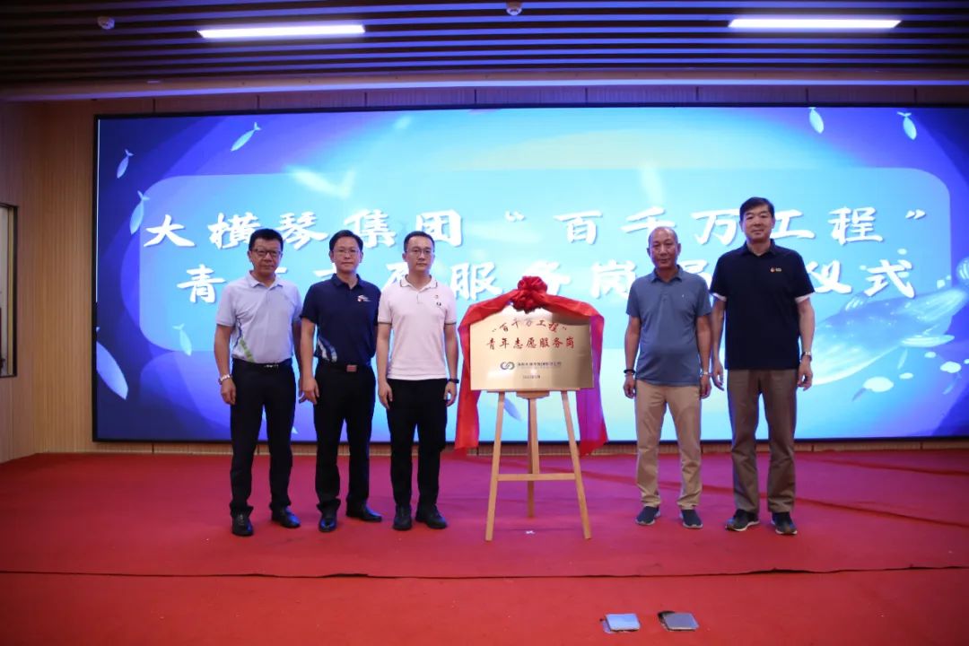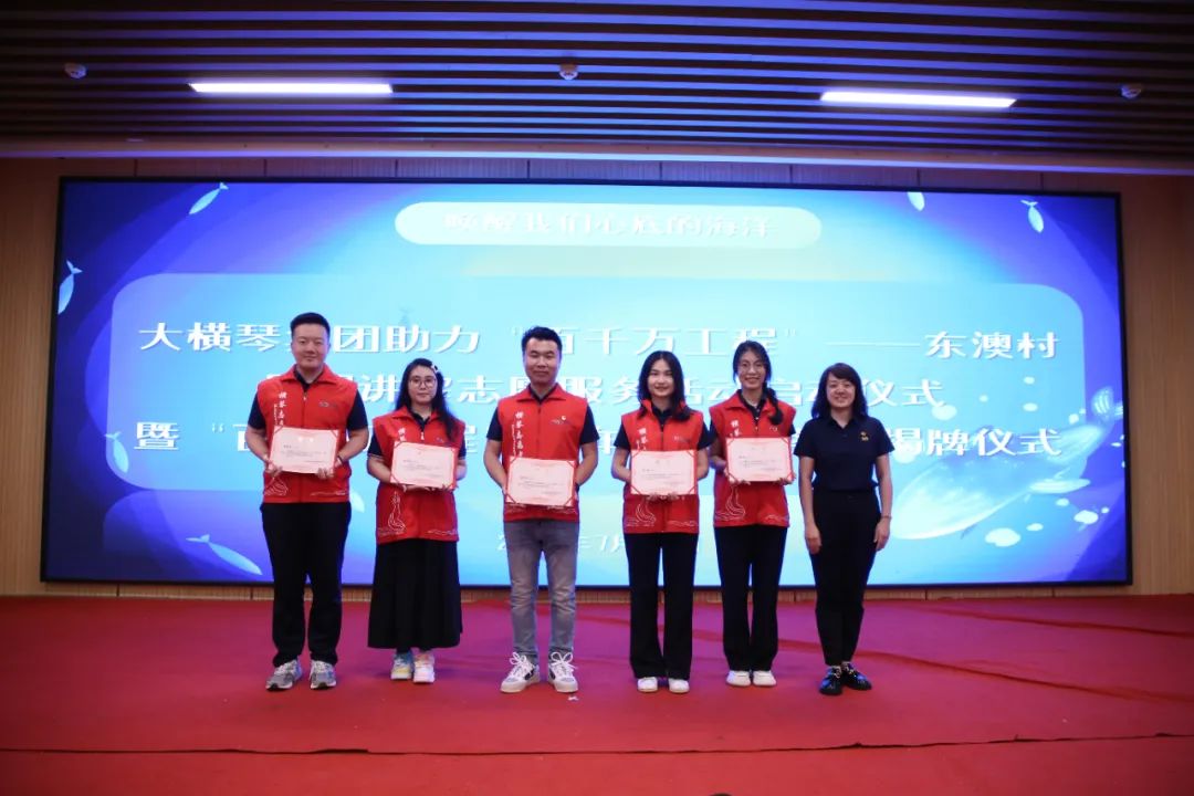 儀式上,共青團(tuán)珠海市委員會權(quán)益與社會工作部部長王臻,珠海市萬山鎮(zhèn)人民政府黨委副書記、鎮(zhèn)長黃軒流,珠海大橫琴集團(tuán)有限公司黨委副書記戴碩濤,珠海市萬山鎮(zhèn)東澳村書記石志明,萬山海洋生物科普館館長安東共同為“百千萬工程”青年志愿服務(wù)崗揭牌,啟動助力“百千萬工程”——東澳村暑期講解志愿服務(wù)活動。