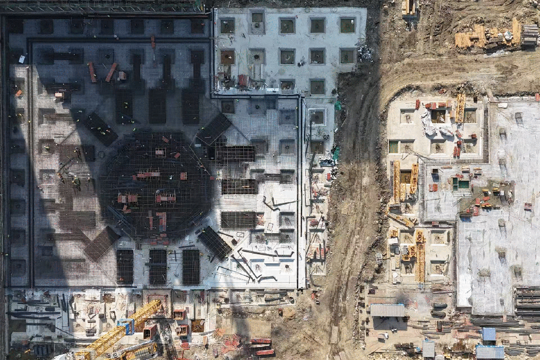 20日下午兩點,隨著一聲令下,攪拌車轟鳴著啟動,車輪滾滾,穿梭在工地道路上,卷起陣陣塵土,恰似一場盛大的工業(yè)“接力賽”拉開帷幕。一罐罐精心調配的混凝土,在泵送壓力下,如熾熱的血液,沿著輸送管道奔涌向前,精準地注入這尊“建筑巨人”的核心筒內。施工現(xiàn)場中,上百名經(jīng)驗豐富的建筑工人分工明確,有的手持振搗棒確保漿體氣泡消散,結構密實;有的在旁密切監(jiān)測澆筑高度,校核澆面平整,他們的專注眼神與嫻熟動作,交織成一幅熱火朝天的勞動畫卷。
