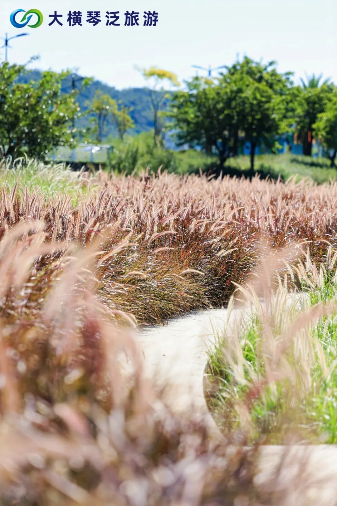 花海長廊、天沐河、小橫琴山等橫琴生態(tài)公共空間化身“城市會客廳”,成為市民游客遠(yuǎn)離喧囂的理想去處?!懊谰奥螌W(xué)”引領(lǐng)游客投身橫琴的生態(tài)畫卷:在花海長廊月季園欣賞月季妖嬈,闖入繽紛花海,讓濃烈色彩收藏于鏡頭;在橫琴賽艇公園體驗(yàn)草浪蹁躚,搖曳的狼尾草波浪成為秋日限定的毛絨濾鏡,看光斑舞蹈、聽風(fēng)聲絮語,收獲滿滿治愈力;在山海驛站感受山海交融,見證咫尺山巒與遠(yuǎn)處海洋交匯,藏匿城市之外的寧靜,領(lǐng)略“偷得浮生半日閑“的真諦。